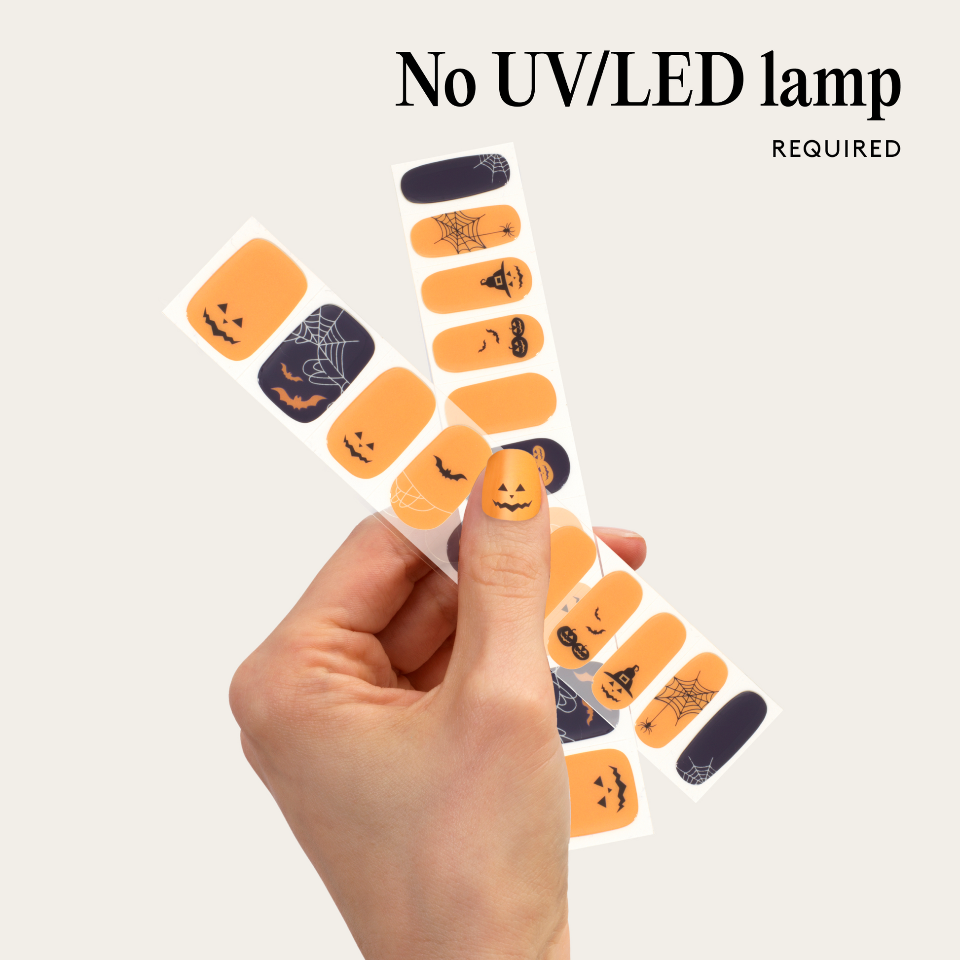 It’s giving full pumpkin patch energy. With bold orange tones, cheeky pumpkin faces, bats, cobwebs, and a pop of purple, these Gel Nail Wraps are a Halloween party for your nails. Just peel, stick, shape, and go - these wraps last up to 14 days with a salon-quality finish.